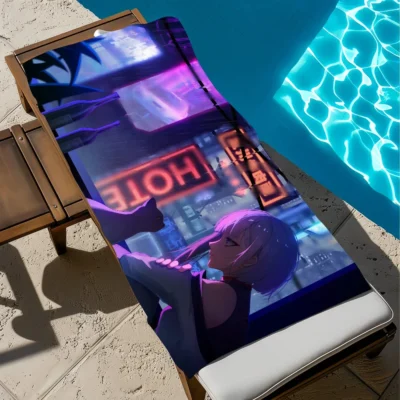 Hot Cyberpunk Edgerunners Lucy Characters Beach Towel
