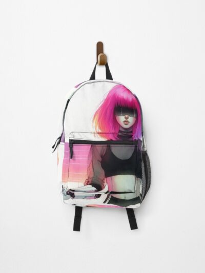 Cyberpunk Neon Girl With Pink Hair Backpack