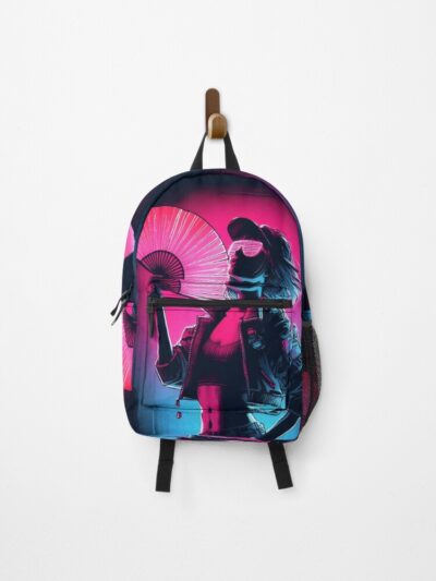 Cyberpunk Girl With A Fan Neon Synthwave Backpack