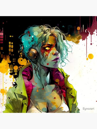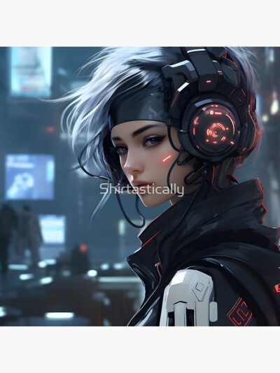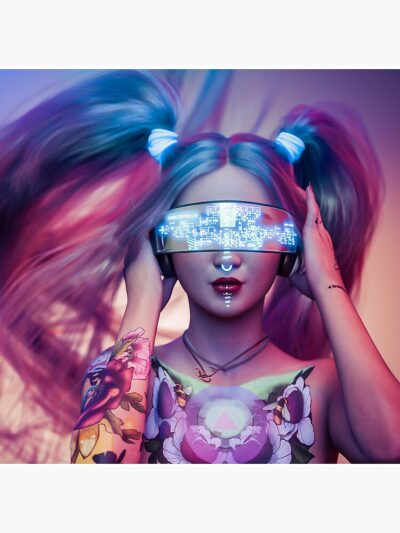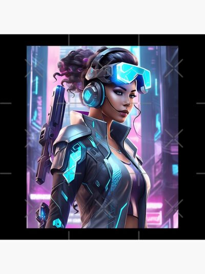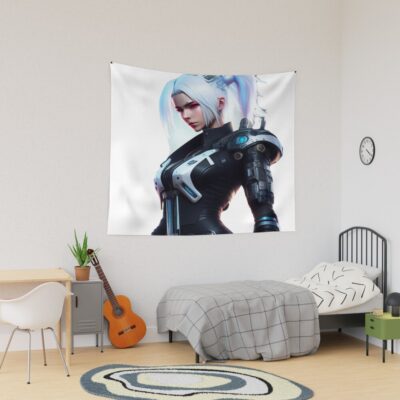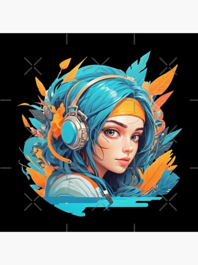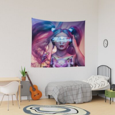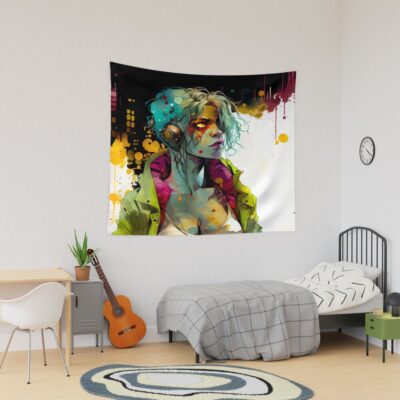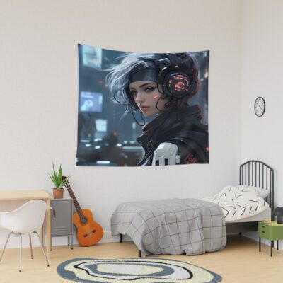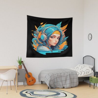 Stylish Cyberpunk Girl With Blue Hair And Headphones Tapestry