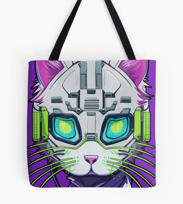 Cyberpunk Cat Hacker Cybercat Chronicles Collection Tote Bag