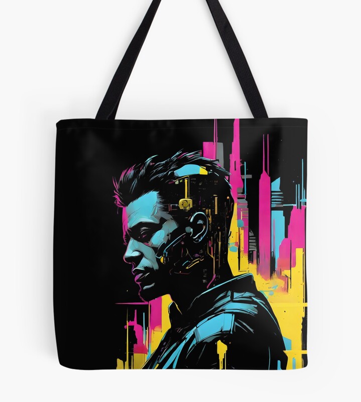 Cyberpunk Man Within The Urban Jungle Tote Bag